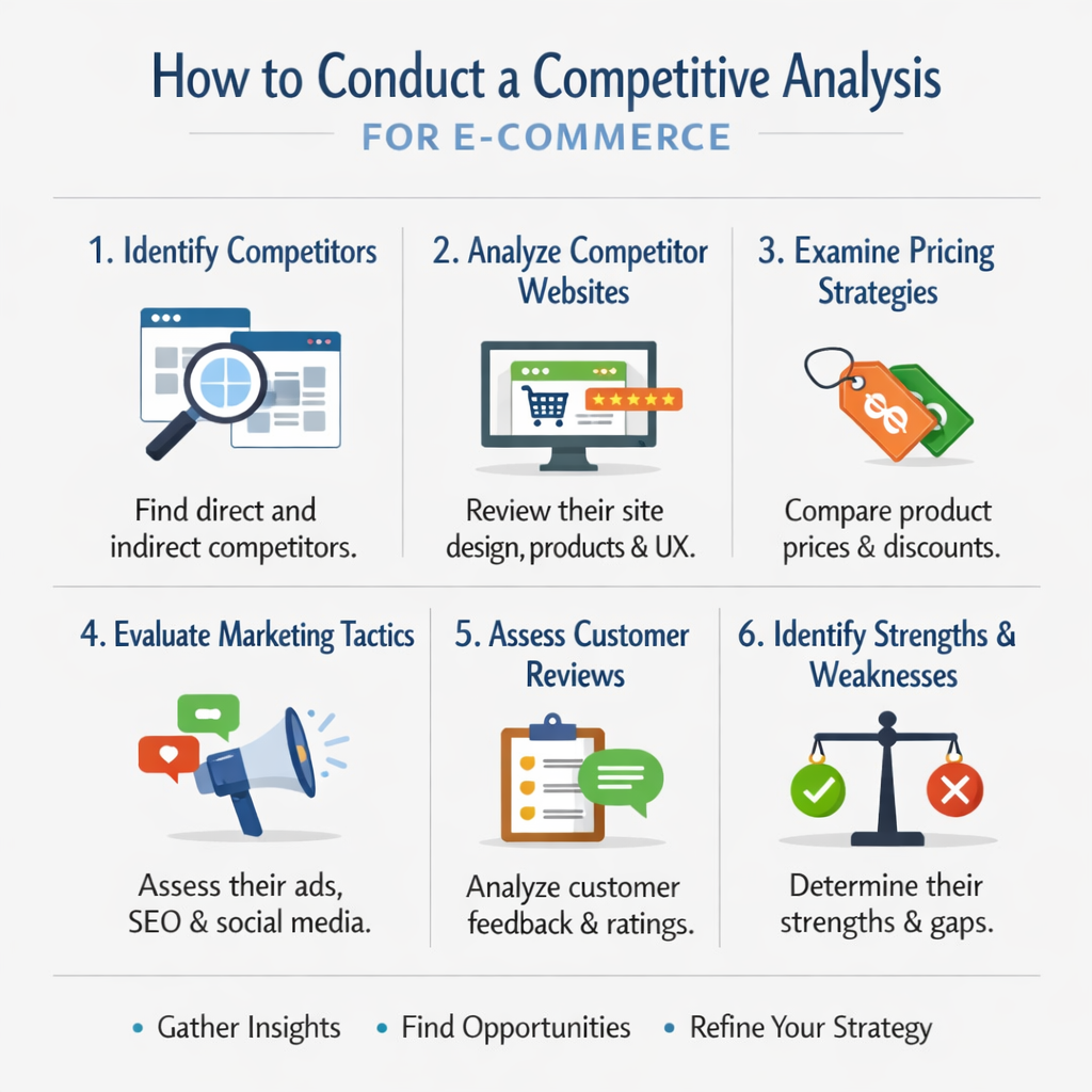 Compreender os concorrentes facilita a diferenciação e permite perceber o que torna realmente único o seu negócio. No e-commerce, esta análise é particularmente importante para: