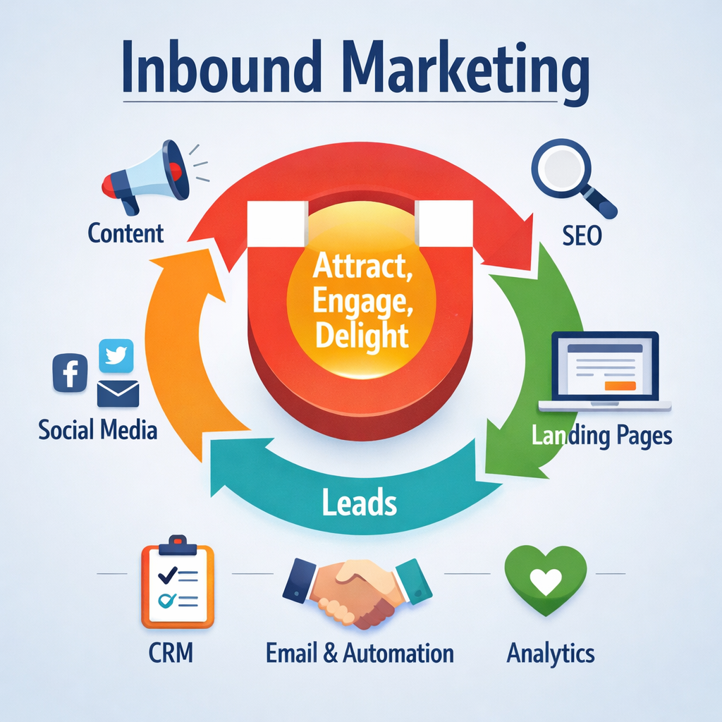 O inbound marketing baseia-se na atração de clientes através de conteúdo útil e relevante. Em vez de interromper com publicidade invasiva, a marca é encontrada por utilizadores que procuram ativamente soluções.